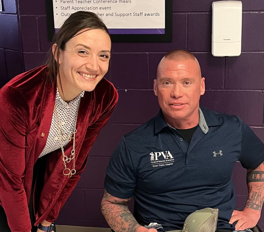 Veterans SSGT (R) Will Leavitt and Editor, Madison Garey, after Louisville Public Schools Veterans Day Event November 10, 2023